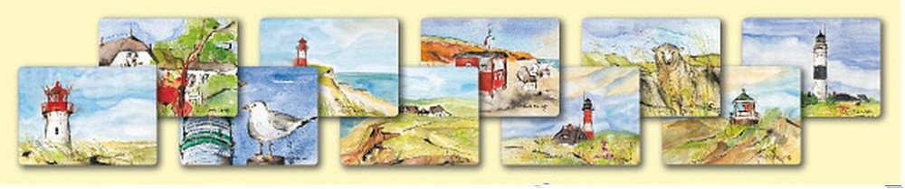 Die nördlichste deutsche Insel hat bis heute nichts von ihrem Reiz verloren. Besucher finden nicht nur in den Sommermonaten Erholung an den langen Sandstränden, unter wohltuender Sonne. Sylt ist auch außerhalb der Saison ein Geheimtipp. Das Nordseeklima, die Seeluft und abwechslungsreiche Naturbilder machen den Aufenthalt auf der nordfriesischen Insel zu einer Erholung für Körper und Seele. Die schönsten Strandabschnitte, auf dem Lister Ellenbogen oder südlich von Rantum, reizen auch bei rauem Wetter zu langen Spaziergängen. Schöne Landschaftsmotive bieten nicht nur Küste und Strand. Orte und Bauwerke auf Sylt sind ebenso einen Besuch wert. Der Leuchtturm von Kampen ist schon bei der Anreise über den Hindenburgdamm von weitem erkennbar. Die reetgedeckten Friesenhäuser mit typischen Sylter Türen prägen das Bild der Inselorte Hörnum, Rantum, Keitum und Kampen. Westerland, der bekannteste Ort auf Sylt, wurde 1855 Seebad. Seine große Kurpromenade liegt unmittelbar am Meer. Die schönsten Motive dieser eindrucksvollen Insel hat die Künstlerin Renate Otto in diesem Postkartenbuch zusammengestellt.